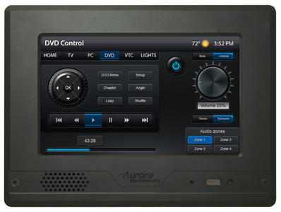 Aurora Multimedia introduces the new hybrid NXT-700 touch panel in-wall controller. The NXT-700 is a revolutionary development that integrates a control system processor with multiple ports into a Web-based touch screen controller. The extremely versatile hybrid combines a spectacular 7-inch widescreen touch panel display with a fully loaded 32-bit 900-MIPS WACI engine. As a registered Bluetooth adopter, Aurora has added a Bluetooth microphone option into the NXT-700 for voice-lift applications. The hybrid can utilize other common Bluetooth accessories, and includes an internal audio mixer to complete the solution.