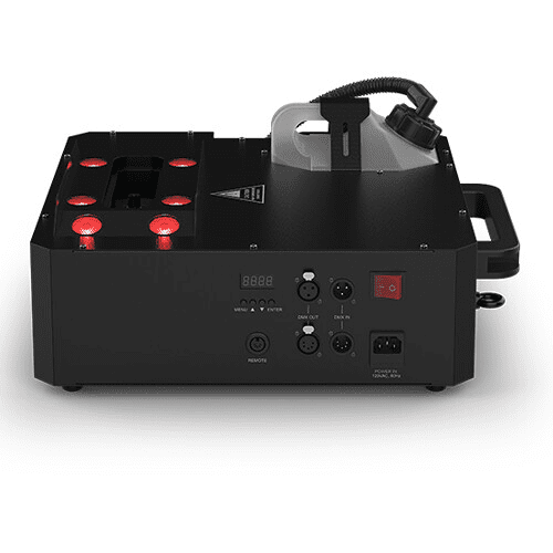- Control the unit from the built-in DMX or the included Geyser wireless remote