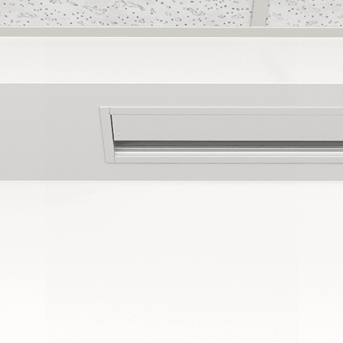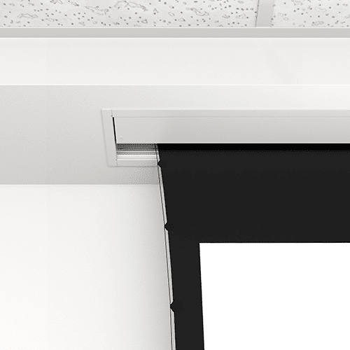 The Tensioned Advantage® ceiling recessed electric screen series is designed with ceiling trim in place, to conceal the rough opening eliminating the need to complete additional trim work once the screen is installed.