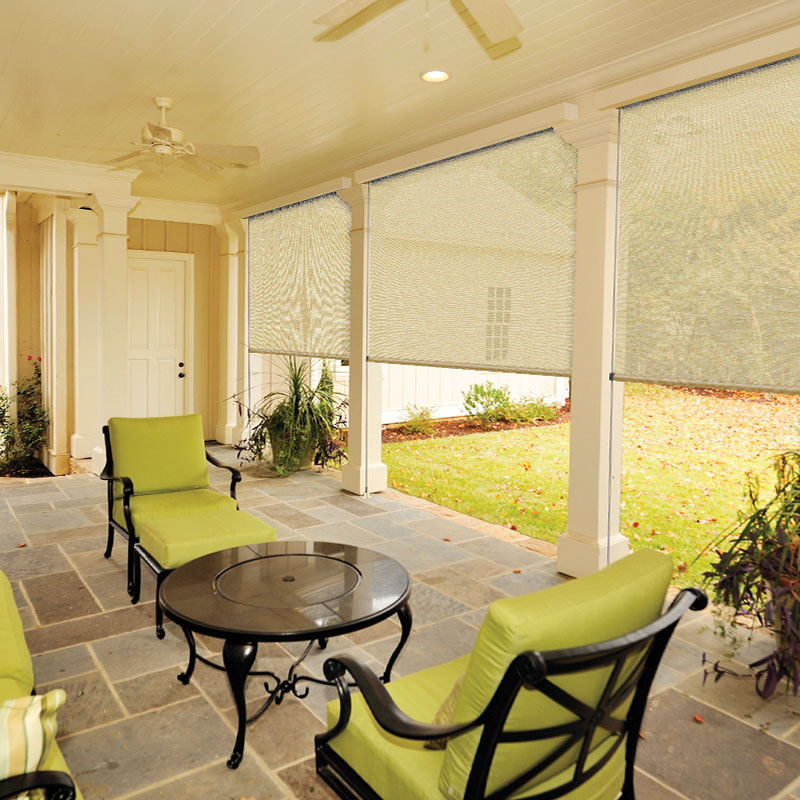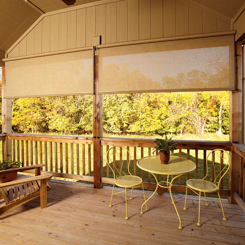 The Exterior Clutch-Operated FlexShade® window shade provides outdoor solar control in a variety of areas. It creates useful outdoor space in restaurants, commercial settings, or pool and patio areas by providing relief from harsh sunlight. As an exterior shade, it prevents most of the solar energy from entering a building, thus allowing for a more comfortable indoor workspace environment.