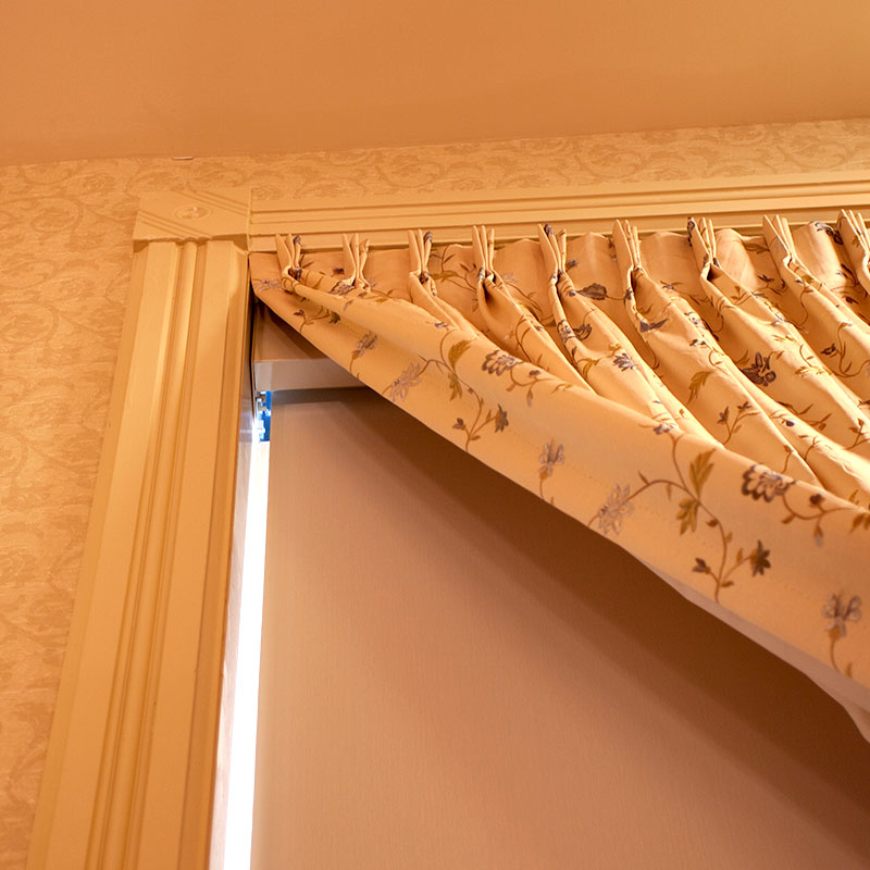 - Mounting brackets (standard). Optional fascia with endcaps, or headbox with closure.
