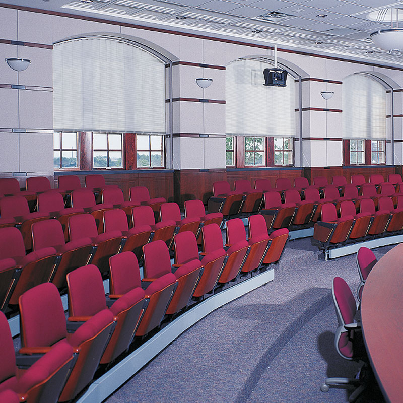LightBloc Manual FlexShade® window shade features a unique Fabric Retention System that keeps the shade fabric in the side channels for a near complete blackout experience. No light gap makes it ideal for audiovisual applications or total opacity in laboratories, schools, hospitals, or atriums.