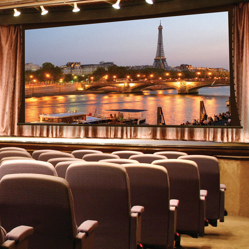 Paragon V electric projection screen the largest tab-tensioned screen Draper® offers. Its size makes it ideal for auditoriums or lecture halls. Tab-tensioned screens provide a perfectly flat viewing surface with