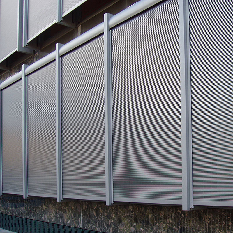 An exterior roller shutter system, s_onro® features aluminum slats designed to provide privacy, yet still allow light and air into the room as needed. Aluminum slats offer a clean, modern look with an architectural feel. They are retractable or can be lowered for a louvered, light-filtering appearance. When the sun rises higher than 20 degrees, direct light is blocked providing automatic glare control. As slats are lowered entirely, they collapse into a solid, opaque wall for total privacy and light exclusion. You control the openness by stopping the descent of the screen. Bottom-up stacking eliminates spacing between the slats and provides privacy by closing the lower portion of the shades and leaving the top open to natural light.