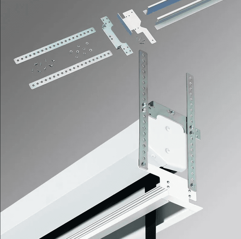 - Includes matching endcaps with universal mounting brackets. Optional floating wall brackets grip the screen securely anywhere along the back of the case, and are barely visible