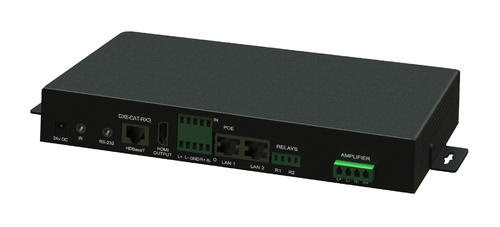 The DXE-CAT-RX3, DXE-CAT-RX3-A, DXE-CAT-RX3L, & DXE-CAT-RX3L-A are a part of the growing Digital Xtreme Series. This product is different than the typical CAT extender found on the market today as it not only breaks the price barrier but the feature and usability aspects as well. Rear mounted connectors provide for a clean professional installation. The DXE-CAT-RX3 Series is designed to complement the Digital Xtreme Series of HDBaseT transmitters such as the DXW-2 Series HDBaseT wall plates, DXE-CAT-TX1, DXE-CAT-TX2, DXM Matrixes, etc. The built in relays are perfect for screen control and the audio amplifier versions will fill the room with sound when used with the Aurora SKR-22T 360° sound field ceiling tile speaker. A low cost, highly integrated solution for rolling carts, podiums, and credenzas is possible with the DXE-CAT family. Going the distance: HDBaseT technology, with a single CAT cable, allows the DXE-CAT to operate up to 330ft 1080p 60Hz 48bit color depth, 500ft 1080p 60Hz 24bit (CAT 6), or 600ft 1080p 60Hz 24bit (CAT 6A Shielded) depending on transmitter model. In addition, the RS-232, IR, & LAN can be sent over the same cable bi-directionally.