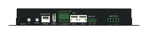 The DXE-CAT-RX3, DXE-CAT-RX3-A, DXE-CAT-RX3L, & DXE-CAT-RX3L-A are a part of the growing Digital Xtreme Series. This product is different than the typical CAT extender found on the market today as it not only breaks the price barrier but the feature and usability aspects as well. Rear mounted connectors provide for a clean professional installation. The DXE-CAT-RX3 Series is designed to complement the Digital Xtreme Series of HDBaseT transmitters such as the DXW-2 Series HDBaseT wall plates, DXE-CAT-TX1, DXE-CAT-TX2, DXM Matrixes, etc. The built in relays are perfect for screen control and the audio amplifier versions will fill the room with sound when used with the Aurora SKR-22T 360° sound field ceiling tile speaker. A low cost, highly integrated solution for rolling carts, podiums, and credenzas is possible with the DXE-CAT family. Going the distance: HDBaseT technology, with a single CAT cable, allows the DXE-CAT to operate up to 330ft 1080p 60Hz 48bit color depth, 500ft 1080p 60Hz 24bit (CAT 6), or 600ft 1080p 60Hz 24bit (CAT 6A Shielded) depending on transmitter model. In addition, the RS-232, IR, & LAN can be sent over the same cable bi-directionally.