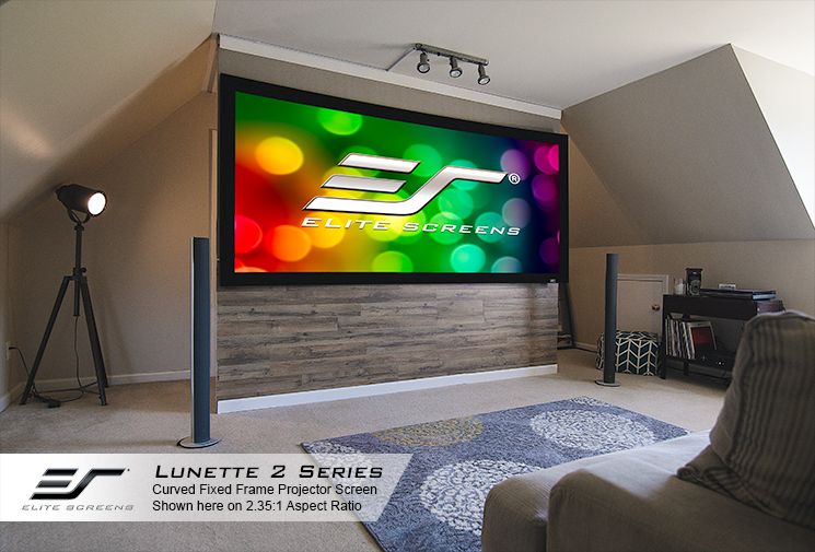 The Lunette Series 2 is Elite Screens curved fixed frame screen with 3.5″ black frame borders that uses the CineWhite® materials. The curved screen is designed to improve image depth and perception while increasing brightness uniformity.