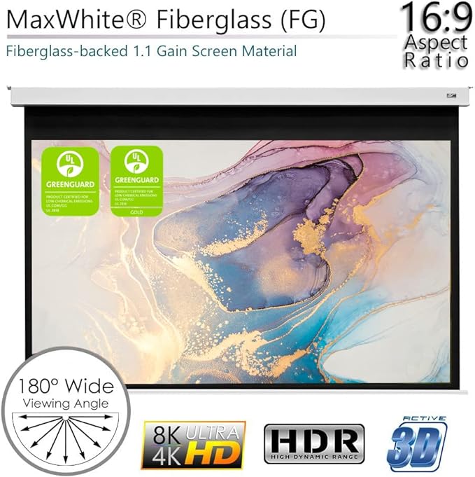 Screen Material- Greenguard® Certified MaxWhite® Fiberglass (FG) front projection material with black backing
