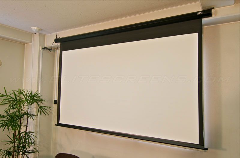 Elite Screens Spectrum Series is a versatile electric motorized screen that fits perfectly in either residential or commercial wall/ceiling applications. Its MaxWhite® 2 1.1 gain projection material displays a bright picture regardless of viewing angle.