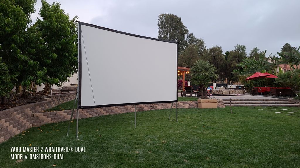 This Yard Master 2 WraithVeil® Dual screen features a 120" diagonal viewing surface. 16:9 aspect ratio is ideal for movies and HDTV content. Features WraithVeil™ Dual projection fabric.