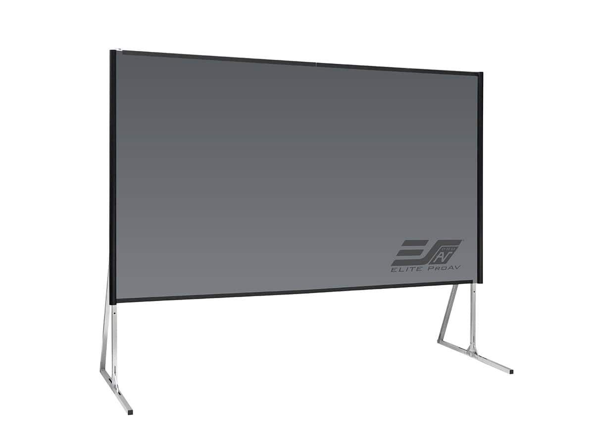 The Presenter Pro is a portable indoor, ceiling light rejecting, front projection screen for ultra-short and short-throw projectors. Its compact folding-frame design makes it a travel friendly solution for bright room environments. It assembles with ease and includes a pair of height adjustable legs for additional stability and support.