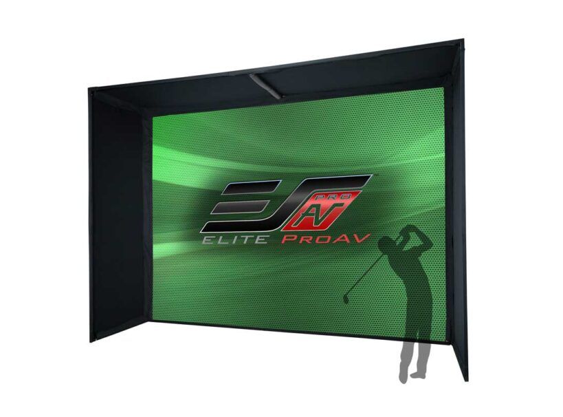 Elite ProAV’s Golf Bay Pro is the ultimate golf simulator enclosure for commercial and professional installations. The enclosure comes with everything you need to build it right out of the box, eliminating the hassle of purchasing additional parts. The Golf Bay Pro includes an impact screen, ball bungees, metal frame tubes, corner fittings, and enclosure cover panels.