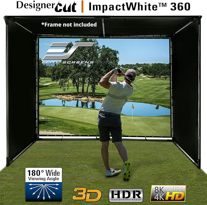 - ImpactWhite® 360 ISF certified single-layer tightly woven screen fabric designed to endure golf ball impact and longevity. (Recommended for short and standard throw projectors)