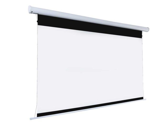 Elite Screens’ VMAX Tab-Tension 3 is an electric/motorized projection screen with CineGrey (Tension High Contrast Grey). It has a tab-tension design to pull and stretch the surface on all sides to achieve a flat and taut projection surface suitable for ultra, short, and standard throw projectors. The material CineGrey (Tension High Contrast Grey) is designed for low contrast DLP and LCD Home Cinema Projectors. Its elegant white arc-shaped housing allows it to be flush mounted on a wall and includes a pair of brackets for flush ceiling installation. Full control kit included to operate the screen right out of the box for a true plug and play solution.