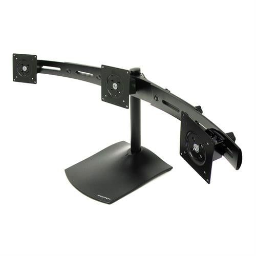 Take back your workspace. This heavy-duty desk stand suspends three monitors on a single base to uncover more work area. View screens side by side for a productivity boost. The modular construction of the DS100 monitor stand makes it easy to customize with accessory add-ons. Easily attaches to monitors that are VESA® compliant.