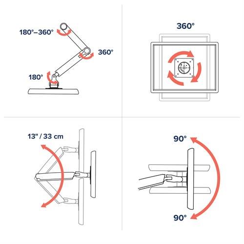 - Protect your space Rotation-stop base keeps arm from hitting the wall or other desks
