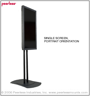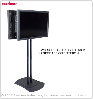 Perfect for conference rooms, lobbies or convention centers, the Flat Panel Display Stand provides a safe and secure solution for displaying digital content in public areas. Its versatile functionality and solid engineering enable you to display a single screen, two screens back to back or even four screens (requires additional accessory) in either landscape or portrait orientations. The integrated security fasteners lock the screens in place, virtually eliminating theft. Additionally, internal cord management completely hides all wires and cables giving your display a clean, professional look while eliminating the possibility of accidental tripping on or snagging of cords.