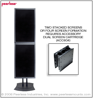 - Fits single or back-to-back 32"-60" flat panel screens (up to four with additional dual screen cartridge)