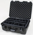 Black waterproof injection molded case with interior dimensions of 20" x 14" x 8". INTERNAL DIVIDER SYSTEM