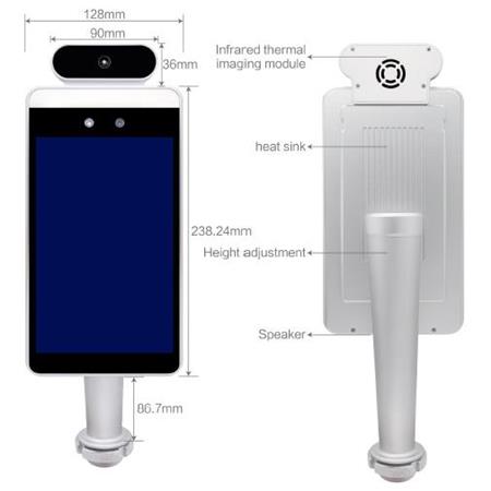 Dynamic Detection Display Temperature Scanner Kiosk with Facial Recognition, Base Unit and Floor Stand
