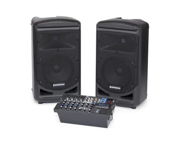 - Samson Portable PA System - Expedition XP800 - The Samson Expedition XP800 is an all-in-one sound system that offers excellent audio quality with quick and easy setup. Providing 800 watts of power, the XP800 features a lightweight, 8-channel powered mixer and two 8" speakers. For enhanced portability, the XP800 offers a unique speaker-locking design that allows the system and all its components to be packed up and transported as a single unit weighing just over 40 pounds.