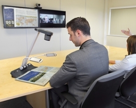 The camera can be used in many applications. A large A4-size built-in LED backlight design allows for easy viewing of documents, such as slides, film, and X-rays. An Ethernet function and a built-in mic and speaker provide a means for real-time remote interaction; up to 50 users can join in online simultaneously. A software called Podium View comes included and per a connection to a computer offers enhancement features like picture-in-picture, zoom and pan. These features can be applied to images already captured and stored or onto ones being projected live. Via dual VGA inputs and an S-Video input, two computers and a DVD player can simultaneously be connected for a multimedia workflow. A projector can additionally be connected, and an Image Mode feature on the camera reduces image quality interference caused by different types of projectors. Also, a Time Stamp function overlays each video, photo and audio file with a time stamp, facilitating convenient and effective data and database management. And an audio/video Splash Screen function uploads a logo or design, accompanied by audio, to be added to beginnings of presentations.