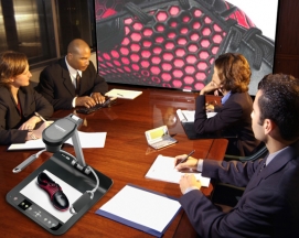 The camera has two USB inputs -- one for a USB flash drive to store up to 32GB of files on, and the other to connect an optional mouse or tablet by. Files saved on a USB can be played back when needed, and annotations to projected images can be made by mouse or tablet, instead of strictly by connection to a computer. For other controls, the camera features a high-quality touch panel with intuitive buttons. The camera is compatible with both Macs and PCs and with all major interactive white board brands.