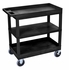The Luxor E Series utility carts are made of high density polyethylene structural foam molded plastic shelves and legs that won't stain, scratch, dent or rust.