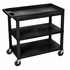 The Luxor E Series utility carts are made of high density polyethylene structural foam molded plastic shelves and legs that won't stain, scratch, dent or rust.