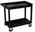 The Luxor E Series utility carts are made of high density polyethylene structural foam molded plastic shelves and legs that won't stain, scratch, dent or rust.