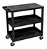 The Luxor E Series utility carts are made of high density polyethylene structural foam molded plastic shelves and legs that won't stain, scratch, dent or rust.