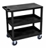 The Luxor E Series utility carts are made of high density polyethylene structural foam molded plastic shelves and legs that won't stain, scratch, dent or rust.