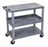 The Luxor E Series utility carts are made of high density polyethylene structural foam molded plastic shelves and legs that won't stain, scratch, dent or rust.