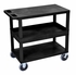 The Luxor E Series utility carts are made of high density polyethylene structural foam molded plastic shelves and legs that won't stain, scratch, dent or rust.