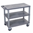 The Luxor E Series utility carts are made of high density polyethylene structural foam molded plastic shelves and legs that won't stain, scratch, dent or rust.