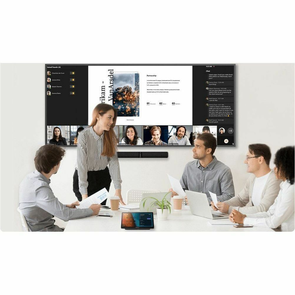 MAXHUB XBAR V50 is designed for Microsoft Teams Rooms, offering a seamless video conferencing experience. The integrated system features an 11.6-inch touchscreen for easy navigation and control. With a video bar and touch console included, it transforms any meeting space into a collaborative environment. The dual digital video camera supports a 125° field of view with intelligent focus capabilities. Coupled with audio fencing and AI noise reduction, the XBAR V50 ensures clear communication during video calls, allowing participants to engage without distractions. The speaker tracking and auto framing features enhance the meeting experience, making it suitable for both small and large groups.