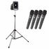 The MegaVox System X4 package includes the MegaVox MEGA2-XU4 battery powered wireless PA speaker, speaker stand, and 4 wireless microphones in one of the following configurations: