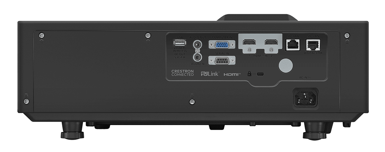 Dedicated LAN terminal and DIGITAL LINK connections support the latest protocols, including IPv6, Art-Net DMX, PJLink™ (Class 2), Crestron Connected® V2, Crestron® XiO Cloud, and Extron XTP®. The projector also includes an emulation function to ensure compatibility with legacy management software. Note: The optional AJ-WM50 Series Wireless Module does not support IPv6.