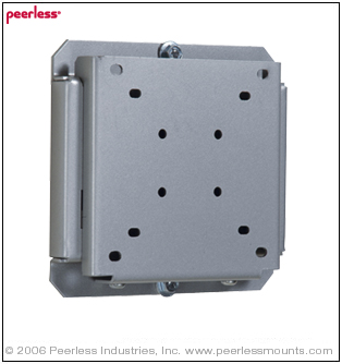Peerless Flat Wall Mount for Small LCD 10"-24" Screens - SF630P - The SmartMount® Universal Flat Wall Mount supports virtually any 10" to 24" flat panel screen. The ultra-slim wall plate keeps the screen close to the wall for a very discreet installation that is perfect for digital signage, POS stations, or office applications. For a quick and easy installation it may be mounted to a single wood stud, concrete or cinder block. Mounts to metal stud using accessory metal stud fasteners. Compatible with VESA 75mm and 100mm mounting hole patterns.