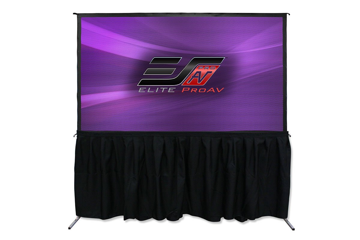 The Starlight Series DUAL XL ST package features a rigid-frame, non-inflatable screen approximately 13' wide by 7.5' tall and is designed for crowds from approximately 100 to 150 people for small outdoor venues such as country clubs or large indoor venues. The package gets its namesake from the special dual-projection fabric that lets the projector be placed either in front of or behind the screen. This can keep the projector out of your audience, preventing accidents due to bumping into the projector or shadows cast by people walking between the projector and screen. It also features a short-throw projector allowing the projector to be placed close to the screen. This can come in handy for those who want to use rear projection, but do not have much room behind the projection screen for projector placement. Unique to this package is a black velour skirt that gives the screen a more finished, professional look.