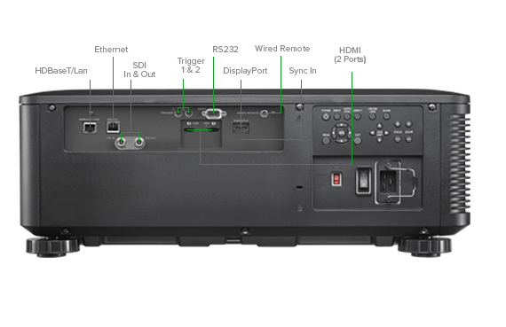 | Inputs: | HDMI x 2 DisplayPort x 1 BNC x 1 RJ45 x 1 RS232 x 1 12-Volt Trigger x 2 Wired Remote In x 1 |