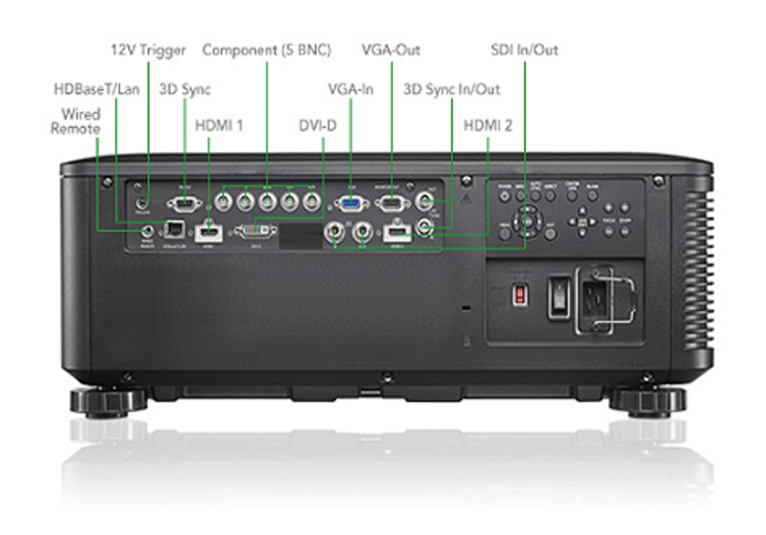 Excellent ConnectivityThe Vivitek DU8395Z-BK provides the connections necessary for a large venue and many other enviornments: HDMI input, 3G-SDI, HDBaseT, BNC for YPbPr/RGBHV, VGA input for PC and Laptop, S-Video, Composite video, IR input, Rs232c and 12V Trigger for screen automation.