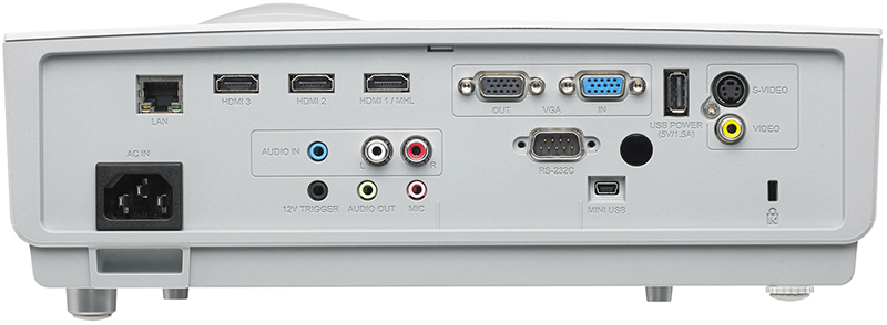 | Inputs: | HDMI x 3 (1x MHL compatible) VGA x 1 S-Video x 1 Component Video x 1 3.5mm Stereo Audio x 1 3.5mm Microphone Input x 1 RCA Audio (L/R) x 1 USB Type A x 1 USB Mini B x 1 RJ45 x 1 RS232 x 1 12-Volt Trigger x 1 |
